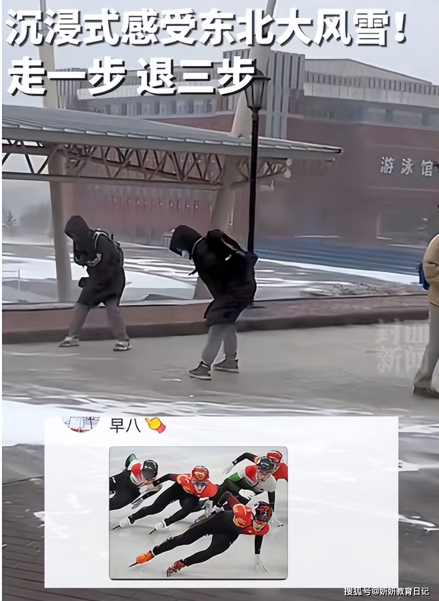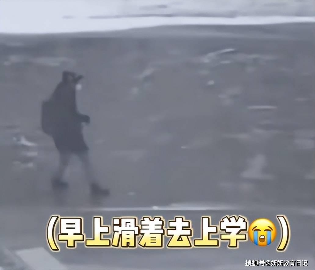 女同学小心翼翼的互相搀扶着走,好像集体被流放“宁古塔”,而有的男同学根本丝毫不畏惧风雪,顺着风的方向一路划着就到了教室,直接变身“羽生结弦”。