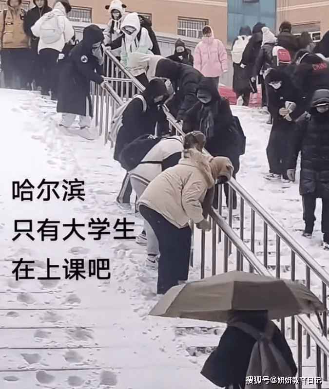 南方同学面临的可能是突如其来的暴雨,而东北同学面临的则是停不下来的暴风雪。哈尔滨学生上课的场面,也是震惊诸多南方同学。