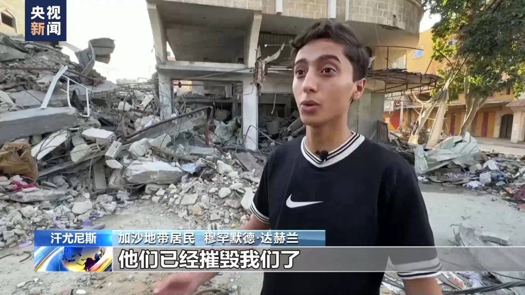 加沙地带居民 穆罕默德·达赫兰:他们(以色列人)还用威胁吗?他们已经摧毁我们了,他们的炸弹加起来的威力可比一枚核弹大得多。我怀疑加沙都没有一片完好的地方可以让他们扔核弹了。正如你看到的那样,整片街区都被摧毁了,他们什么都没给我们留下。