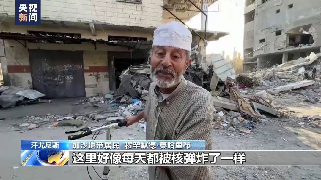 加沙地带居民 穆罕默德·莫哈里布:让他(埃利亚胡)来看看,我们这儿都被炸成什么样子了。这里好像每天都被核弹炸了一样,我们真的难以承受。