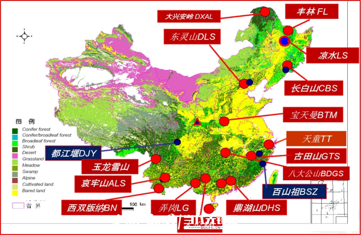 2004年开始,中国科学院生物多样性委员会组织建设中国森林生物多样性监测网络,截至2022年3月,已建立了24个大型森林动态监测样地,覆盖了中国从寒温带到热带的森林类型,是全球第一个具有完整纬度梯度的森林生态系统监测研究网络的国家。