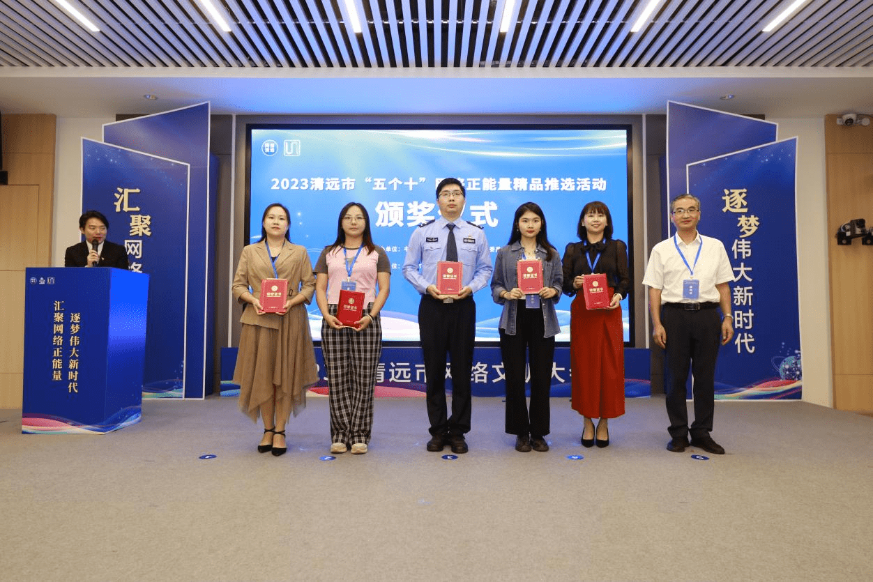 经过资料审核、初评、公示和专业评审等环节,2023清远市“五个十”网络正能量精品推选活动最终评出短视频、专题、图片、故事、主题活动共五大类网络正能量作品,并于此次大会为上述五大类作品的前十强获奖单位代表颁奖。