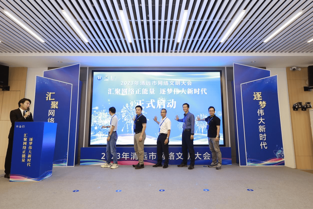 清远市网络文化协会代表宣读《共建网络文明行动承诺践诺书》,号召践行“坚持思想引领,把握正确方向”“ 坚持价值导向,建设清朗空间”“坚持行业自律,践行社会责任”“ 坚持行为规范,提高文明素养”“坚持科技向善,助推创新发展”五大承诺。