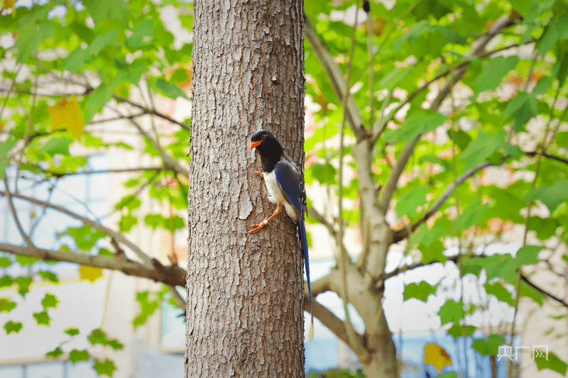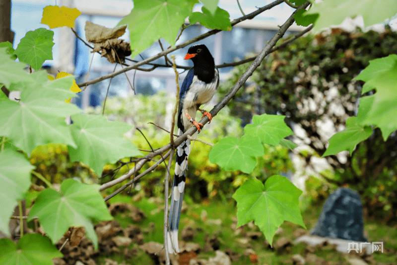 生性活泼的红嘴蓝鹊在林间飞来飞去(央广网发 曾玉娟 供图)