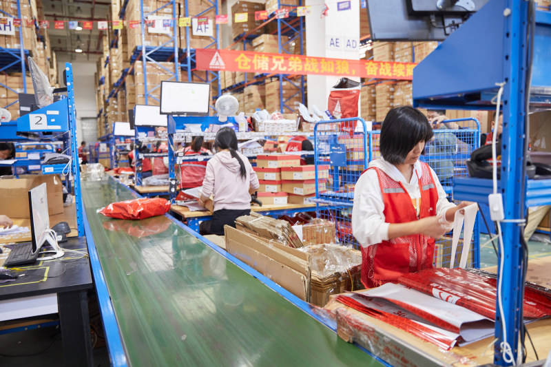 ▲大促开启后,足力健的仓库每天都在开足马力。文万周|摄