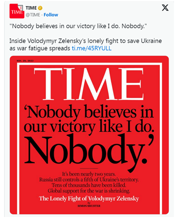 乌克兰《基辅邮报》也注意到这篇美媒文章。这家乌媒报道说,这篇文章将泽连斯基描绘成一位疲惫不堪、心怀怨恨的领导人,他感到自己被盟友背叛了。文章描绘了一位领导着腐败政府的总统,他无法倾听身边的顾问们日益高涨的呼声,这些顾问们告诉他,乌克兰需要在与邻国俄罗斯的一场必败之战中改变路线。“许多乌克兰的支持者谴责了这篇文章,指责作者支持俄罗斯的宣传,而泽连斯基的反对者和那些批评对乌援助的人则抓住文章信息(发起抨击)。”《基辅邮报》说。