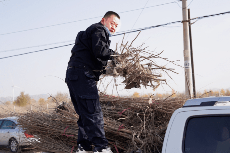 在库尔勒市龙山生态防护林植树点义务植树现场,大家干劲十足,有的拿铁锹,有的运树苗,有的栽种树苗,各个环节衔接有序。在大家的共同努力下,25万株胡杨树苗迎风挺立,展现出蓬勃生机。