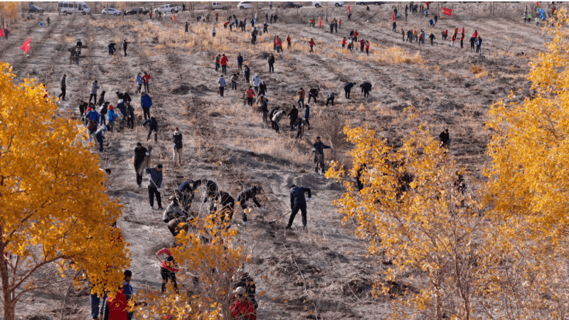义务植树添新绿,11月6日,新疆巴音郭楞蒙古自治州开展2023年秋季义务植树活动,以实际行动践行绿水青山就是金山银山的发展理念。州、市四套班子领导与机关、企事业单位干部职工及志愿者共3600余人参加义务植树活动。