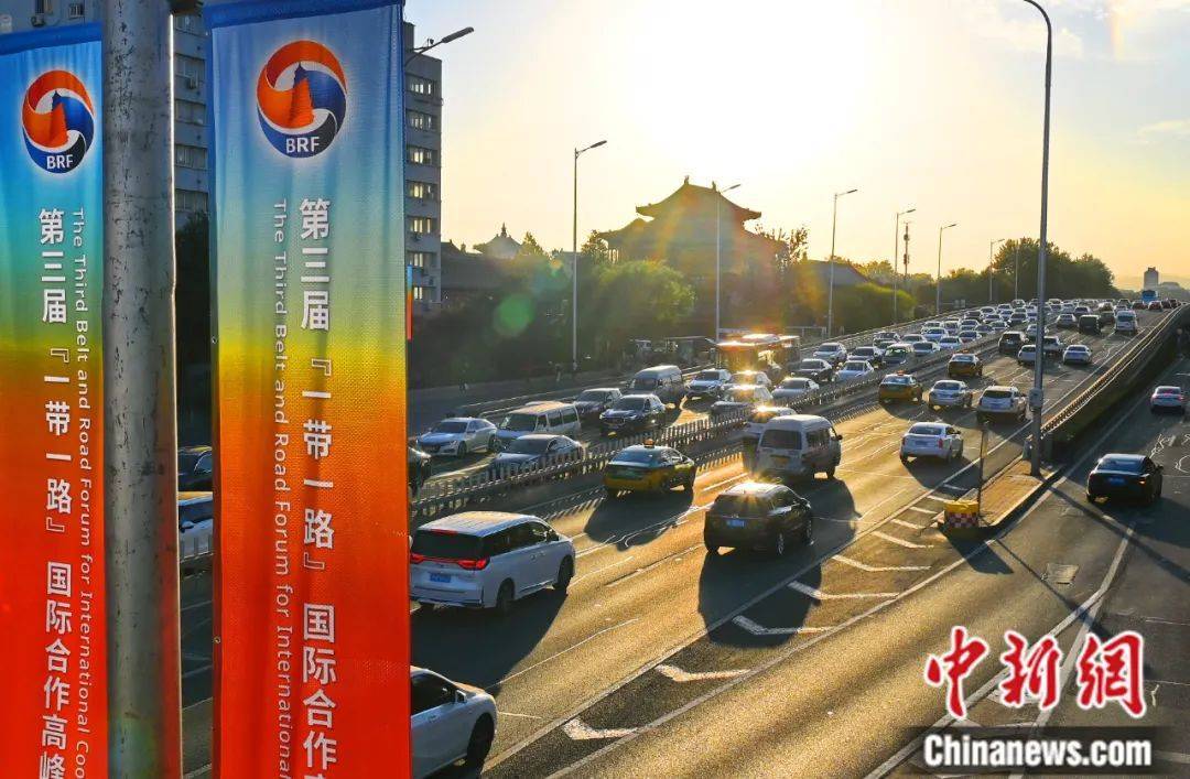 2023年10月,北京市街头布置的第三届“一带一路”国际合作高峰论坛元素装置。胡庆明 摄