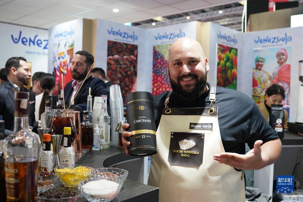 11月7日,展商在第六届进博会国家展委内瑞拉展台展示朗姆酒。