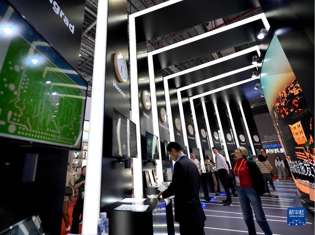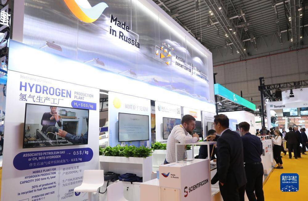 11月7日,在第六届进博会国家展区,观众在俄罗斯展台参观。