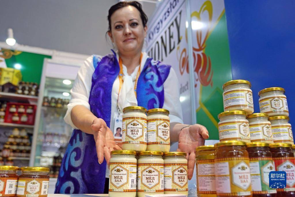 11月7日,在第六届进博会食品及农产品展区,展商展示来自吉尔吉斯斯坦的蜂蜜。
