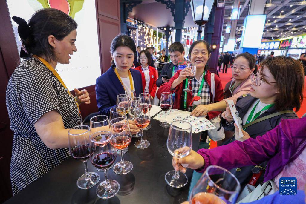 11月6日,参观者在第六届进博会国家展格鲁吉亚展台品尝格鲁吉亚红酒。