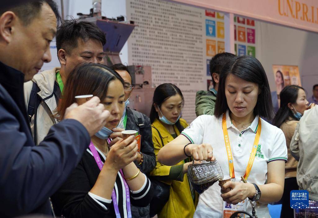 11月7日,在第六届进博会食品及农产品展区,展商请观众品尝来自印尼的咖啡。
