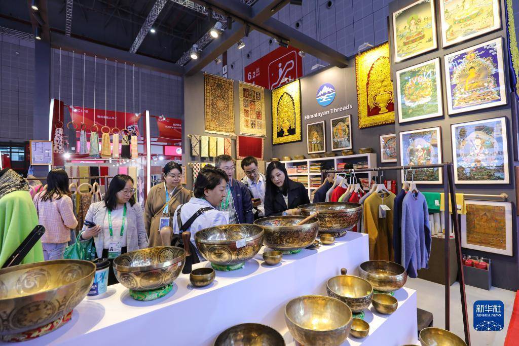 11月7日,在第六届进博会消费品展区,参观者在挑选来自尼泊尔的商品。