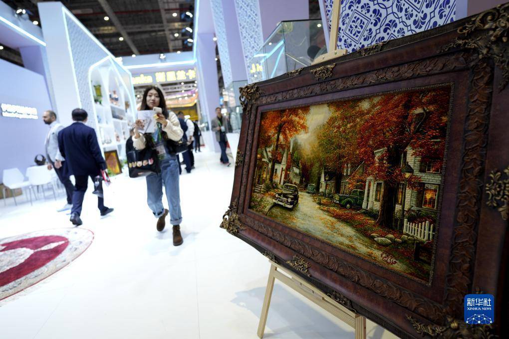 11月7日,在第六届进博会国家展区,观众在伊朗展台参观。