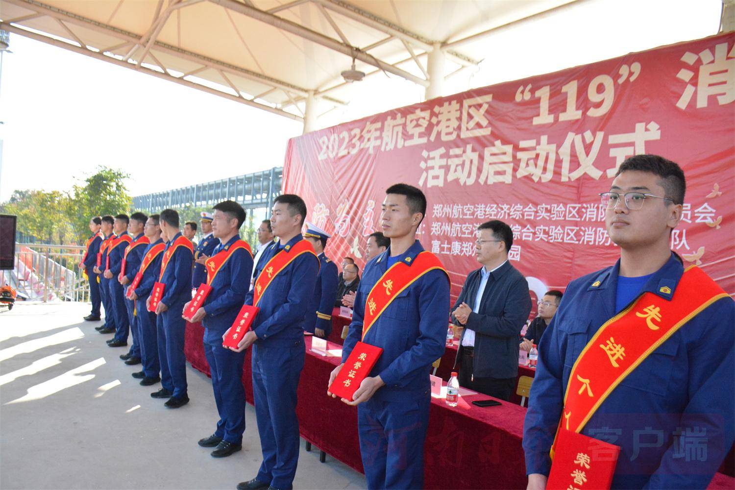 荣获“航空港十佳消防卫士”、“郑州航空港技术标兵”的消防救援人员在启动仪式上受到表彰。活动现场设置了全区消防救援队伍践行重要训词精神成果图片展示区、高精尖器材装备展示区、消防体验打卡区、消防主题文创区等,吸引了在场群众踊跃参与。
