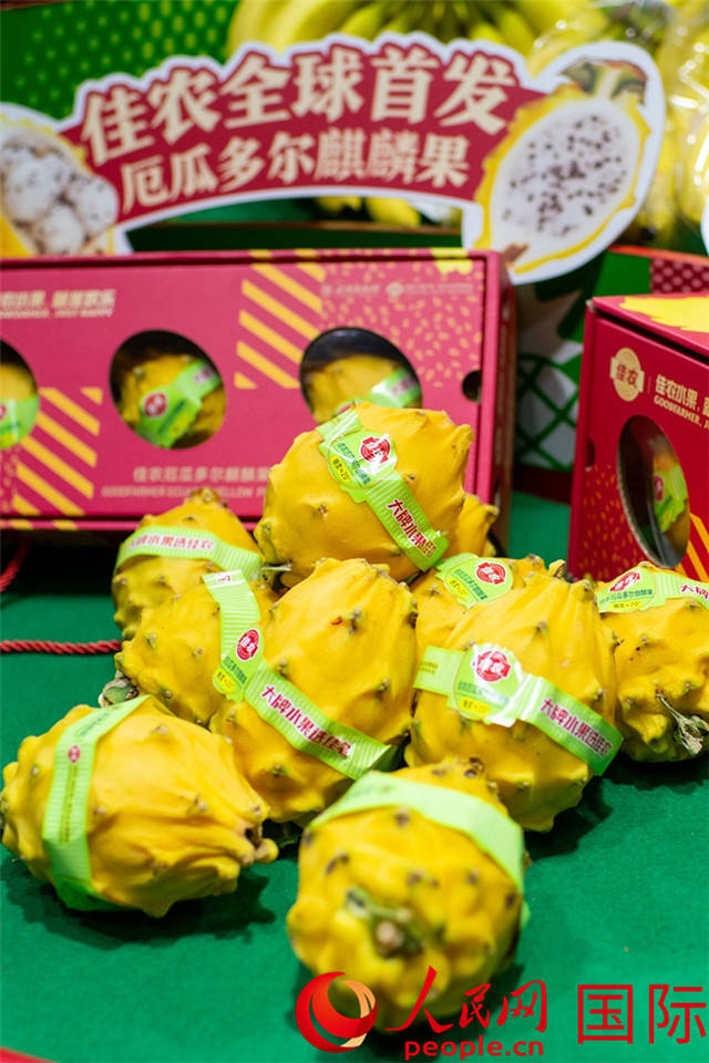 11月5日在食品及农产品展区拍摄的全球首发厄瓜多尔麒麟果。人民网记者 翁奇羽摄
