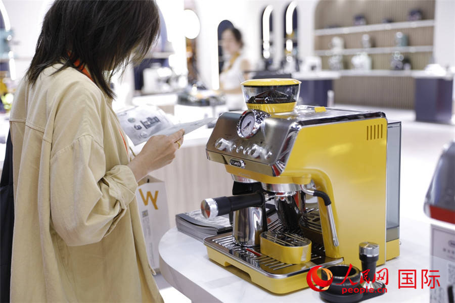 11月5日,一名参观者在消费品展区了解咖啡机功能。人民网记者 李美玉摄
