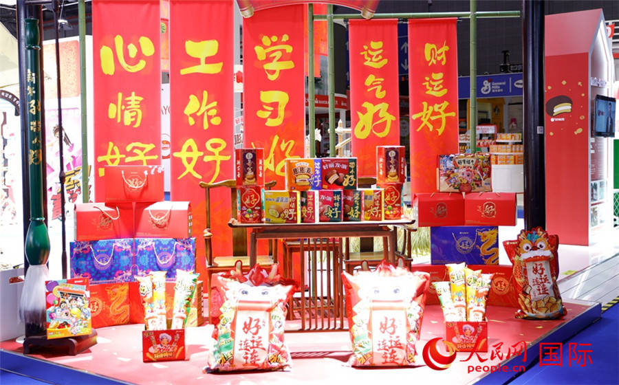 11月5日在食品及农产品展区拍摄的休闲食品展台。人民网记者 李美玉摄