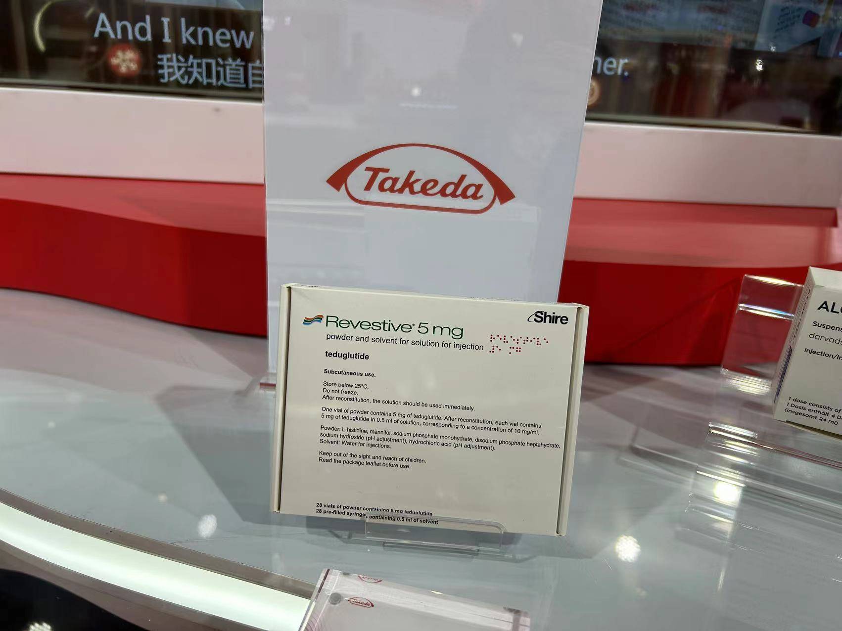 当时,武田展出了消化领域用于治疗短肠综合征的Teduglutide,这是目前全球首个也是唯一一款批准用于短肠综合征的人胰高血糖素样肽2(GLP-2)类似物,在欧美作为“孤儿药”获批,用于治疗1岁及以上SBS患者。