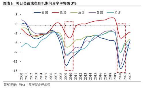 二、从国际经验看,英美德法日等经济体在经济下行期非常果断地突破3%的束缚
