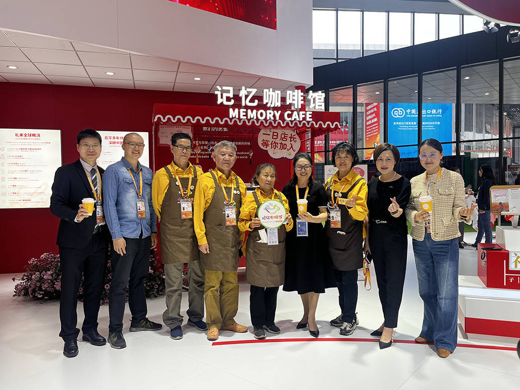 这家咖啡馆为何出现在此,咖啡师又为何都是老人?“记忆咖啡馆”的80后杨店长告诉记者,事实上,它是位于浦东洋泾街道“记忆咖啡馆”的一家进博“快闪店”,被邀请至此,为大家带来公益咖啡。
