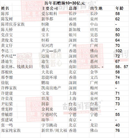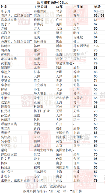 历年捐赠超过5亿元的在世华人大慈善家达到89人,比去年多5人。