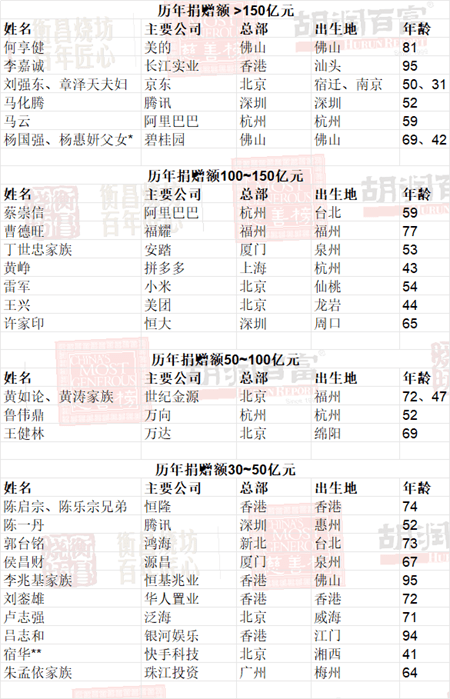 《2023衡昌烧坊·胡润慈善榜》前十名