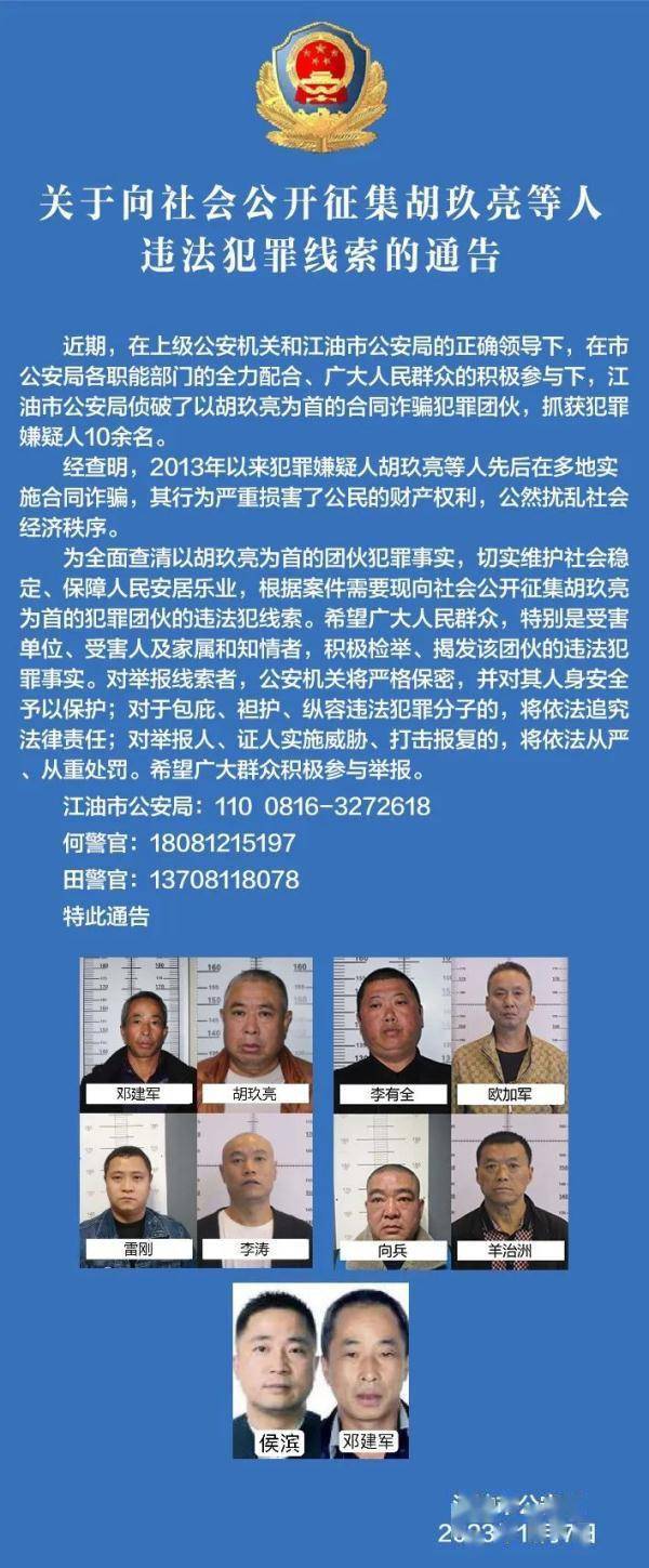 近期,江油市公安局侦破了以胡玖亮为首的合同诈骗犯罪团伙,抓获犯罪嫌疑人10余名。