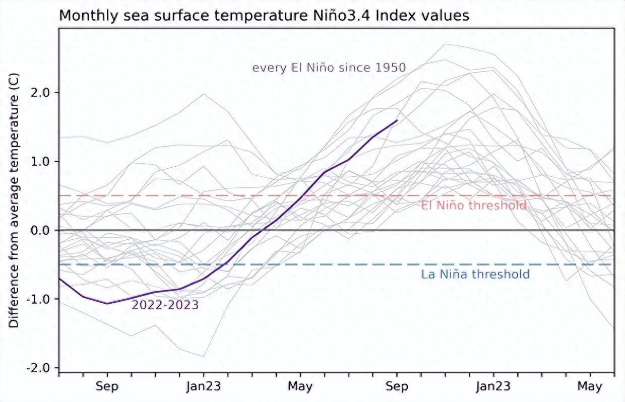 当然,对于2023年来说,其实有一个独特的点存在,那就是厄尔尼诺的发展,这可能也在推动气候的快速演变,这也是事实。