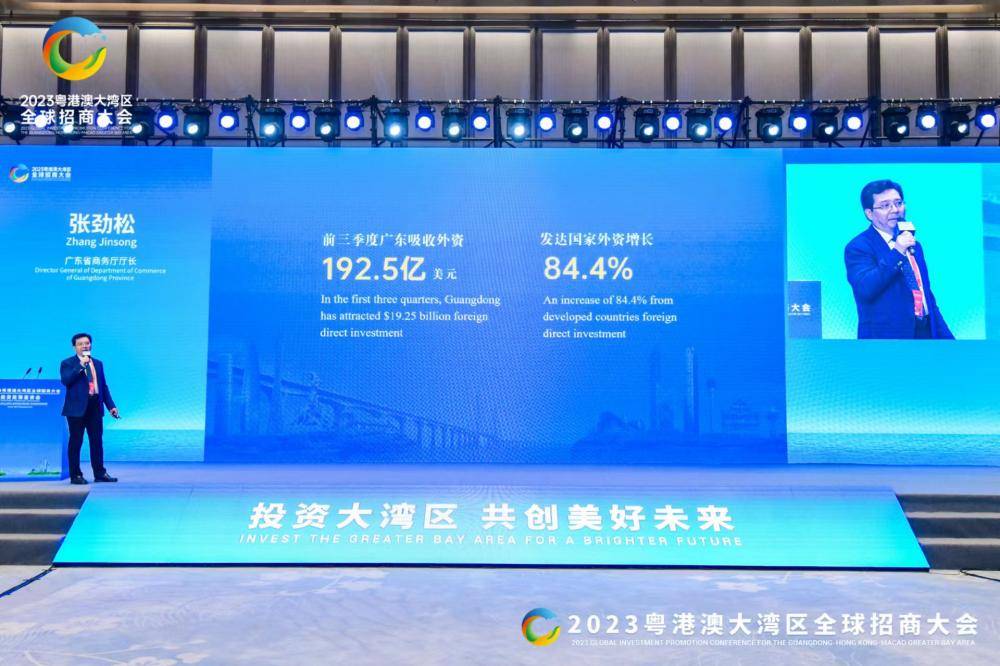 “去年12月,广东成功举办首届粤港澳大湾区全球招商大会,共达成投资项目853个、投资总额达2.5万亿元。一年来,这些项目紧张有序推进,目前开工率超过78%,企业热火朝天的劲头,展示的是对大湾区、对广东高质量发展的坚定信心,为粤港澳大湾区建设注入了新的动力。”张劲松在大会上介绍。
