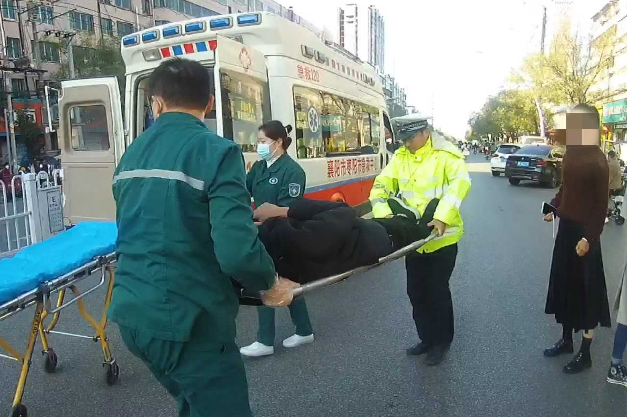 一名中年男子在行经斑马线时,被车撞倒后躺到马路中间,事发时正值早高峰,过往司机一旦未发现,极易发生二次事故。11月7日上午,枣阳市公安局交警大队一中队民警及时救助,护送伤者就医。