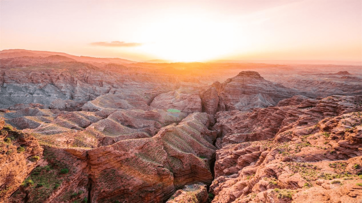 安集海大峡谷存在于天山山脉,这里的山脉有着独特的扇形结构,因为安集海河从上游往下流去,这河流就停不住脚步从上游浩浩荡荡地朝着下面流去,经过了日积月累的冲刷,才形成了现在如此壮观的的扇形结构沟体。在这里不远处有一处有着一片红色的岩石与这里的山体相结合有渐变之感。