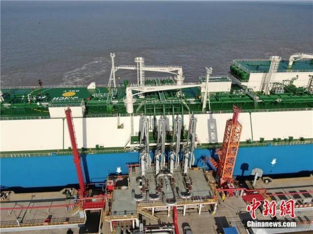 资料图:2021年12月5日,来自澳大利亚的进口LNG船停靠在江苏启东吕四港经济开发区广汇能源LNG接收站码头,准备接卸17万立方米进口LNG。许丛军 摄
