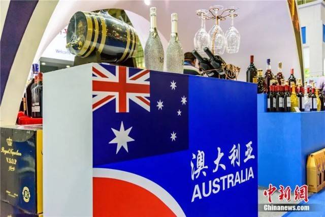 资料图:福建福州一展会上,澳大利亚展馆展出的葡萄酒。吴建德 摄