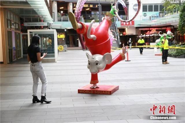 资料图:2020年5月,澳大利亚悉尼一商场的中国生肖元素景观装置吸引民众观看。陶社兰 摄
