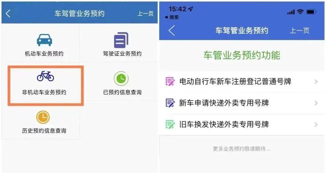 2.选择“非机动车业务预约”,按照你需要办理的业务,进行选择预约。