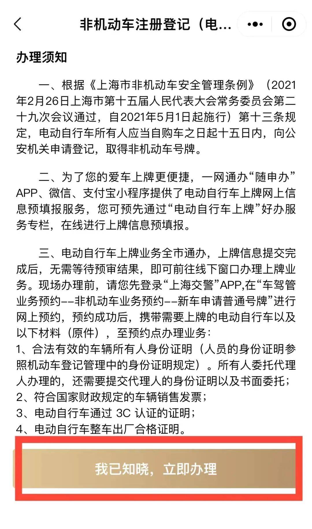 一、根据《上海市非机动车安全管理条例》《上海市非机动车管理办法》及《上海市非机动车登记规定》等相关法律法规规定,电动自行车、残疾人机动(电动)轮椅车要上道路通行的,应当经本市公安机关交通管理部门登记,取得非机动车号牌。