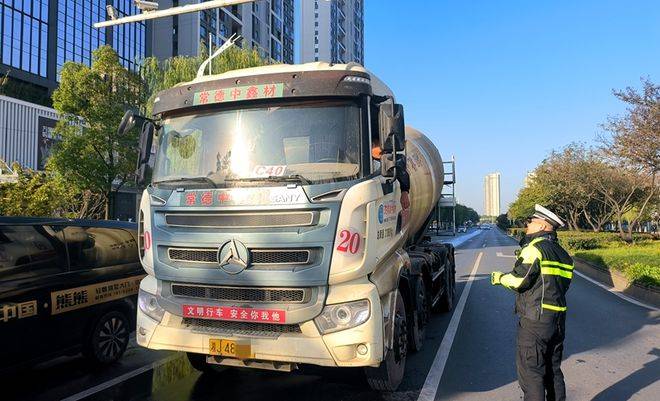 11月7日上午,一辆违反禁行规定的水泥罐车在柳叶大道长庚路口被常德交警直属一大队执勤民警查获,民警依法对其作出罚款100元的处罚决定。