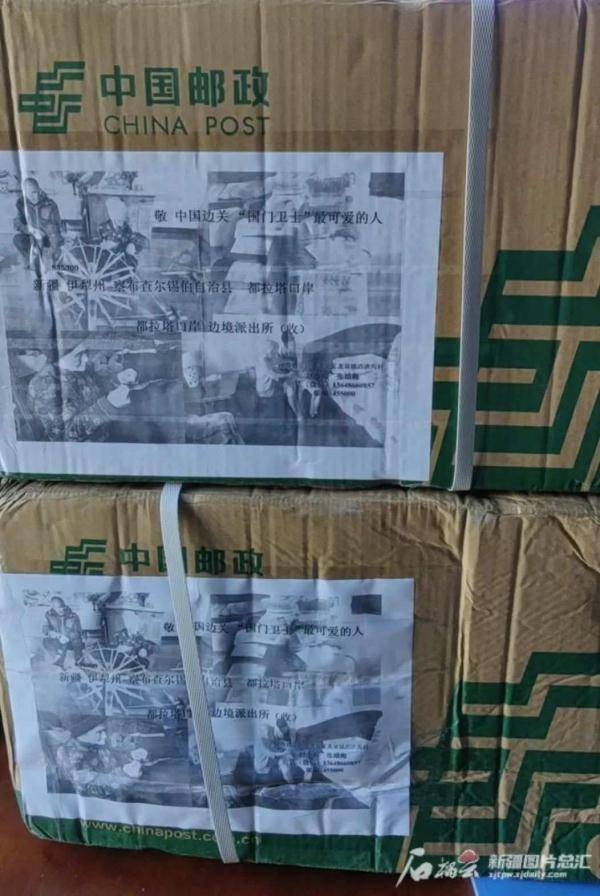 都拉塔边境派出所民警收到装有河南老人赵中福、张娥梅编织围巾的包裹,上面写着“敬中国边关‘国门卫士’最可爱的人”。王鹏飞 摄