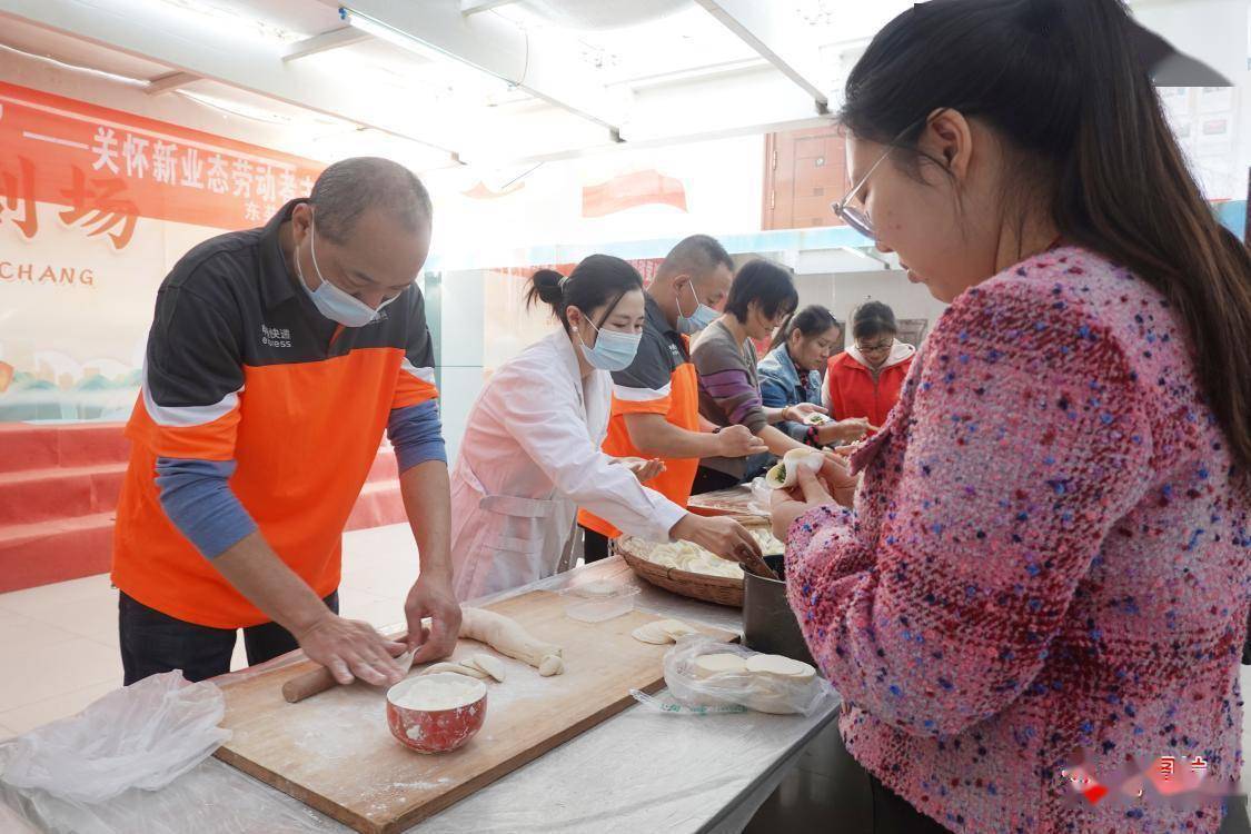 2023年11月8日,安徽省马鞍山市花山区解放路街道东苑社区联合工会开展"关怀新业态劳动者"主题活动,让工会会员们感受到节日的温暖。(夏小芳摄/光明图片)
