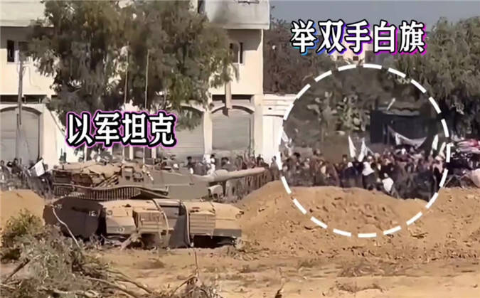 据观察者网报道,近日,以色列国防部下属机构,发布了一段加沙民众撤离的视频,画面显示,许多人举着白旗或高举双手,经过一辆以色列坦克。一名女子接受美联社采访时透露,以军命令每个人必须举双手或举白旗,才会被允许通过。
