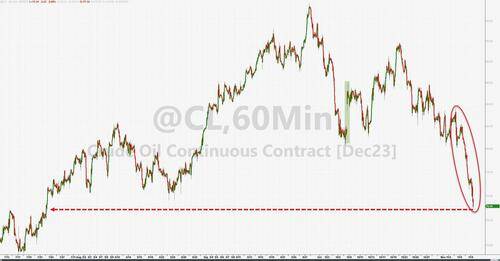 美油WTI在美股盘中跌幅扩大,最深跌2.40美元或跌3.1%,一度失守75美元,布油7月以来首次跌穿80美元关口,最深跌2.39美元或跌2.9%,日低下逼79美元,均至7月20日以来盘中最低。昨日油价曾大幅跳水4%至三个半月新低,完全抹去巴以冲突爆发以来的涨幅。