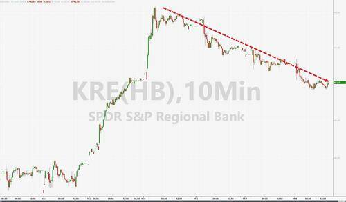 银行股指连跌三日。行业基准费城证交所KBW银行指数(BKX)跌幅砍半至0.4%、进一步脱离六周高位,两周前曾创2020年9月以来的三年最低。KBW纳斯达克地区银行指数(KRX)连续三日跌超1%,进一步脱离七周最高,5月11日曾创2020年11月来最低。
