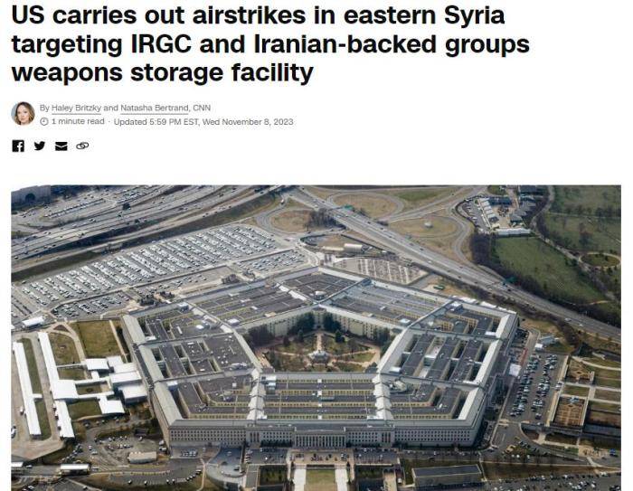 中新网11月9日电 据美国有线电视新闻网(CNN)报道,五角大楼当地时间8日宣布,美军对伊朗伊斯兰革命卫队(IRGC)及其附属组织在叙利亚东部境内所使用的武器储存设施实施了空袭。