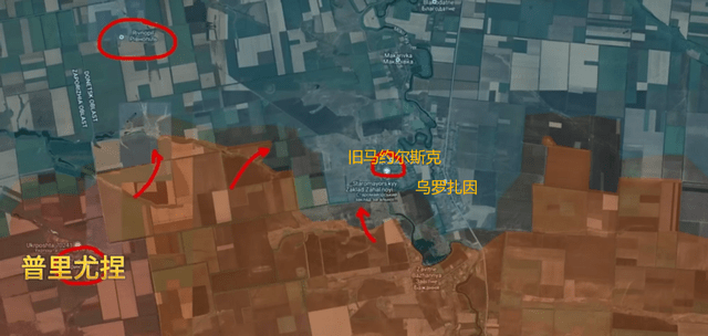 更南面的南顿涅茨克和扎波罗热战线,对比就更明显了。大诺沃西尔卡以南,莫克里亚利河东岸还比较安静,西岸就热闹多了,俄军从普里尤特涅以北进攻,同时向东推进,威胁河谷中的乌军阵地。乌军在此处防御力度不小,因为这个方向的旧马约尔斯克和乌罗扎因,是乌军几个月来最大的战果,但俄军还是在旧马约尔斯克以西取得了一定进展,让河谷中的乌军更加危险,如果俄军进一步推进,乌军就得考虑放弃旧马约尔斯克了。