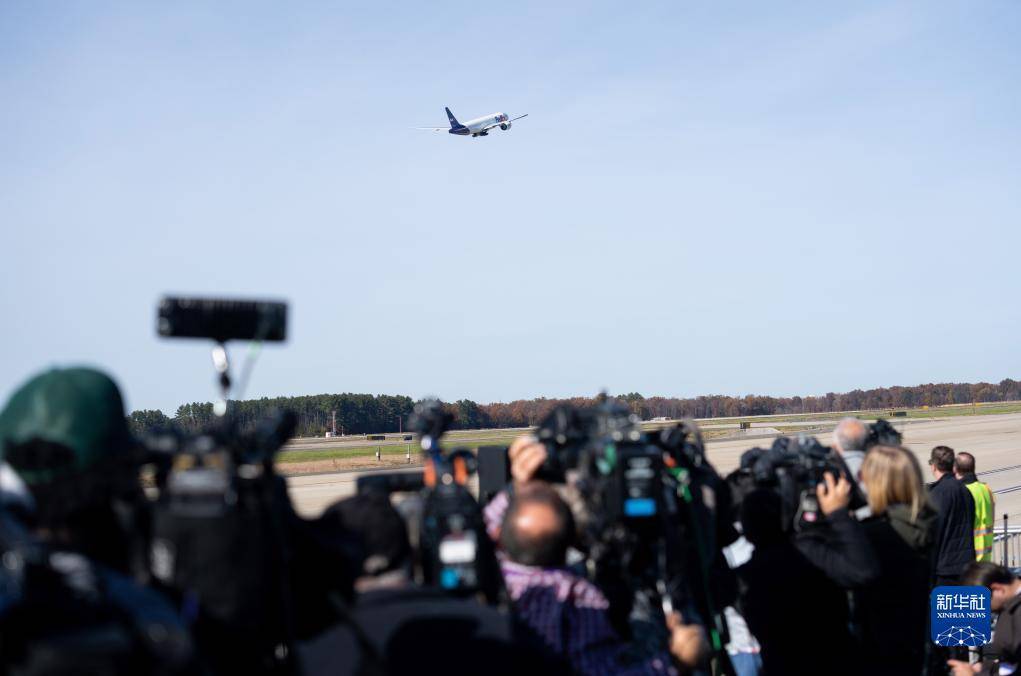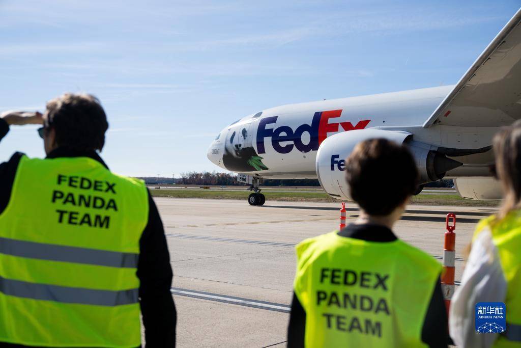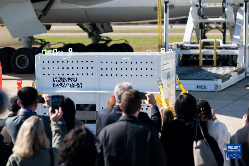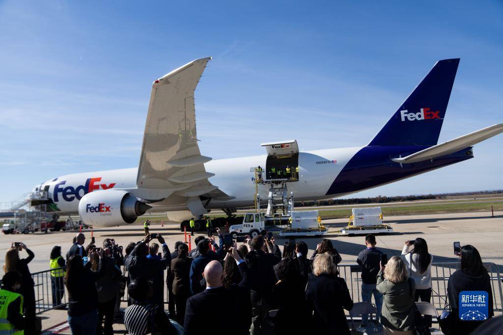 11月8日,运送大熊猫的专机从美国弗吉尼亚州的华盛顿杜勒斯国际机场起飞。