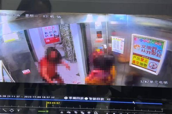视频显示,11月6日凌晨3时45分许,12号楼2单元电梯内,一女子捂着脖颈浑身是血走进电梯,其黄色上衣大部分已被血沁透。随后一红衣女子也慌张跑进来,身上也有血迹。两人均未穿鞋。另一则视频显示,该两名女子已晕倒在大街上,有路人称要打120。