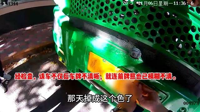 经检查,民警发现该车无市区通行证,后车牌脏污,前车牌也已模糊不清,驾驶人称因为刚给车辆重新喷了漆,所以车牌“变色了”。